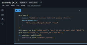Finally, we’ll add data quality expectations to ensure our CDC pipeline remains healthy: