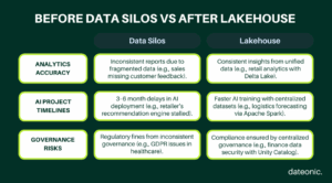 | AI Project Timelines | 3–6 month delays in model deployment | Delayed recommendation engine due to fragmented data sources |