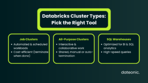 Ready to build an efficient, scalable, and cost-effective data platform? For tailored Databricks cluster optimization and expert consulting on everything from Medallion Architecture to platform governance, visit Dateonic to see how we can help.