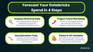 Accurate forecasting is essential for effective budget management. Here’s a step-by-step guide to help you estimate your Databricks spend: