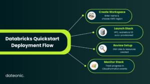 This is the core provisioning step. Databricks simplifies the process to set up Databricks in AWS by using an AWS CloudFormation Quickstart. This template automates the creation of your workspace and the underlying network infrastructure (the „data plane”) within your AWS account.
