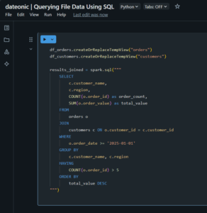 After reading files, you can leverage Spark SQL to analyze your data effectively. This approach combines the flexibility of SQL with Databricks’ distributed computing power.