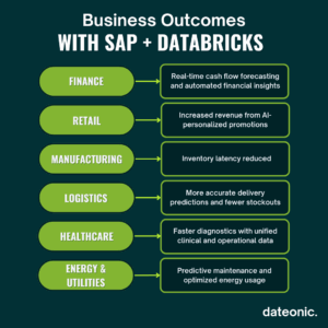 The SAP-Databricks partnership delivers measurable benefits across industries, as shown below. Note that implementation may require data harmonization efforts and varies by organization.